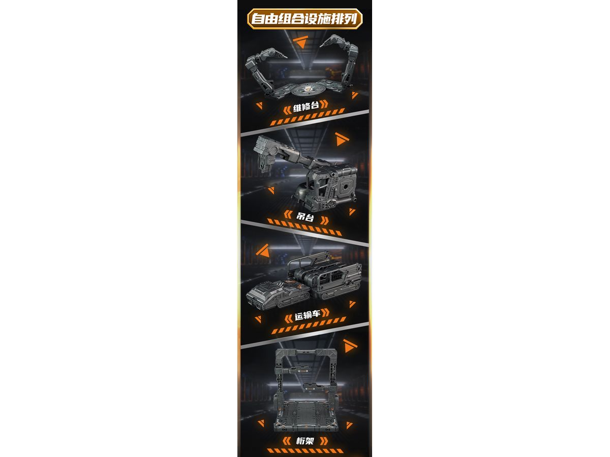 整備台、リフト、輸送車、トラスの4種類の形態に変形可能!