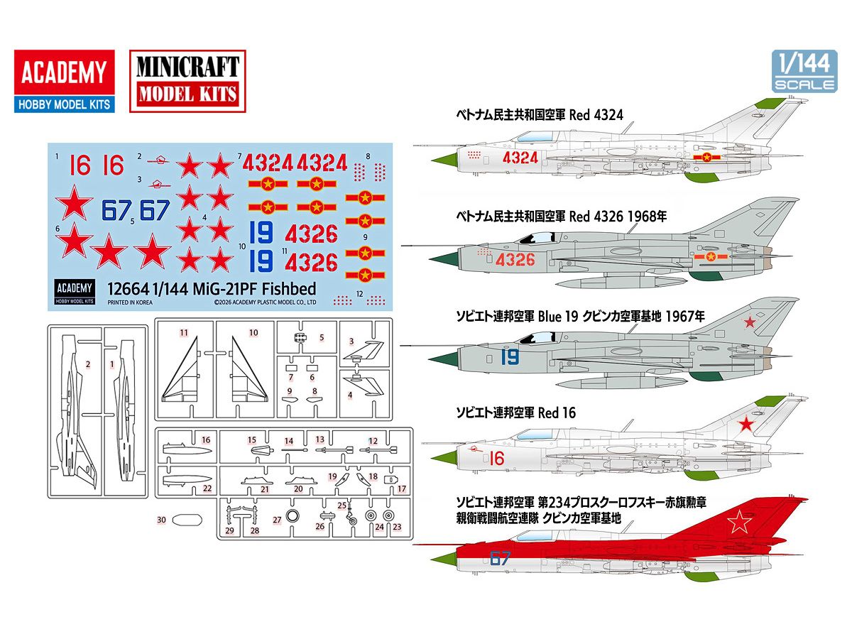 ソビエト連邦空軍や旧共産圏で広く運用されていたMiG-21PF フィッシュベッドDが1/144スケールで登場。