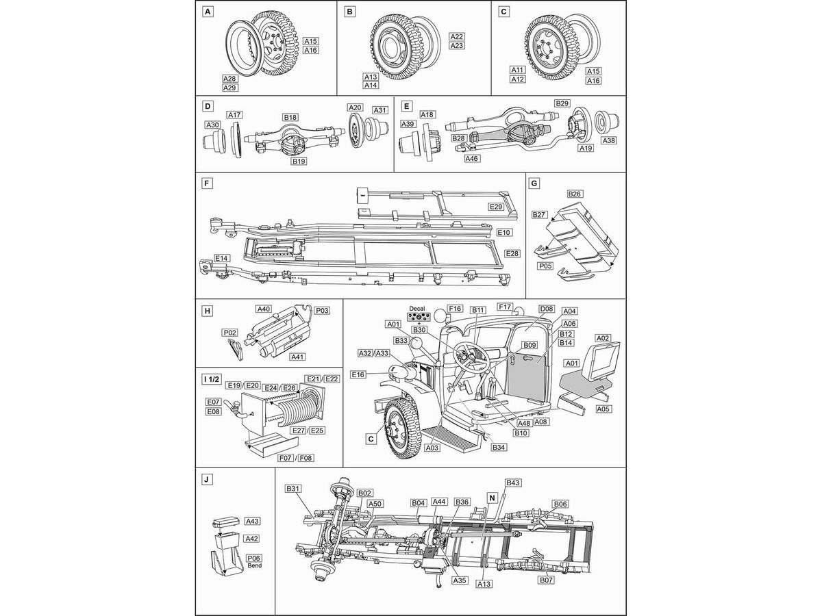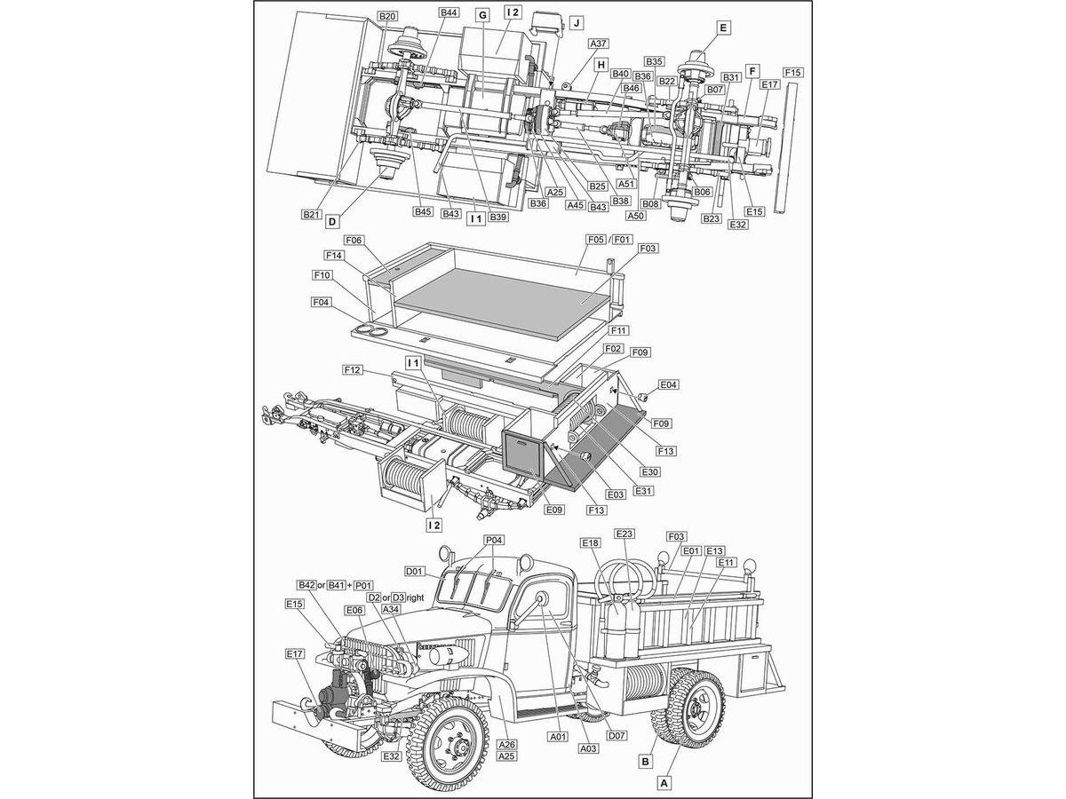 キットにはエッチングパーツと3種類デカール(大戦中の米軍車両、大戦後のアメリカのニューヨーク州エッジウォーターボランティア消防団、レストアされた民間車両 x 1)が付属しています。
