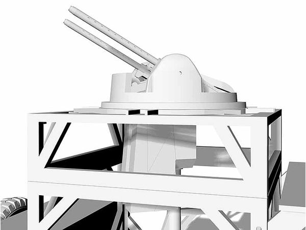 新規金型の航空砲塔とそれを支えるフレームが追加された本商品は、E-5航空砲塔訓練車を精密に再現しています。