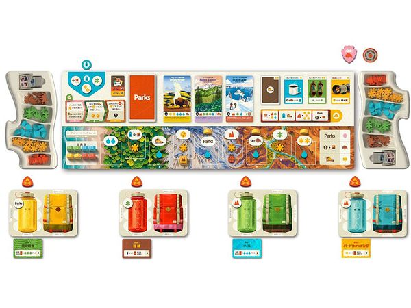 そして、行ったエリアで手に入れた資源を使って、様々な公園を訪問することで得点を獲得します。新たな装備品を手に入れ、水筒の水を補充していけば、より充実したトレッキングができるでしょう。