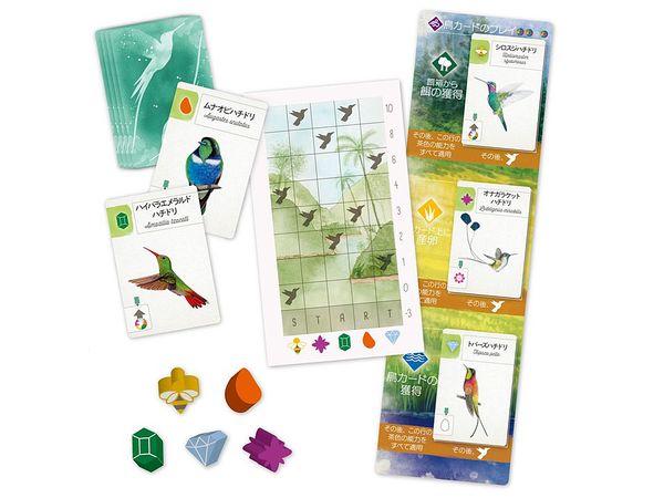 ハチドリを庭から呼び寄せたり、または放したりすることで、専用トラックを進め、勝利点を獲得していきます。新たな中南米の鳥たちが、より幅広い戦略性をもたらしてくれるでしょう。