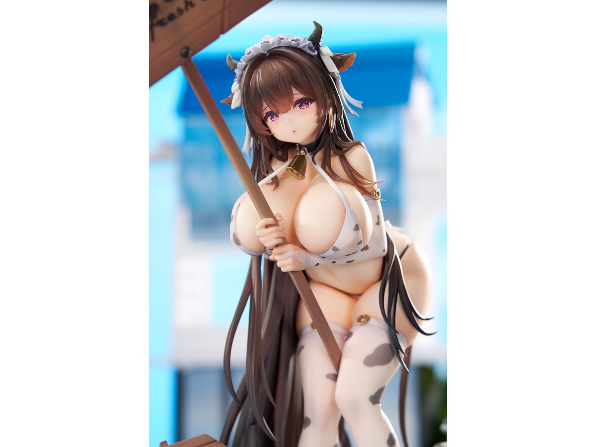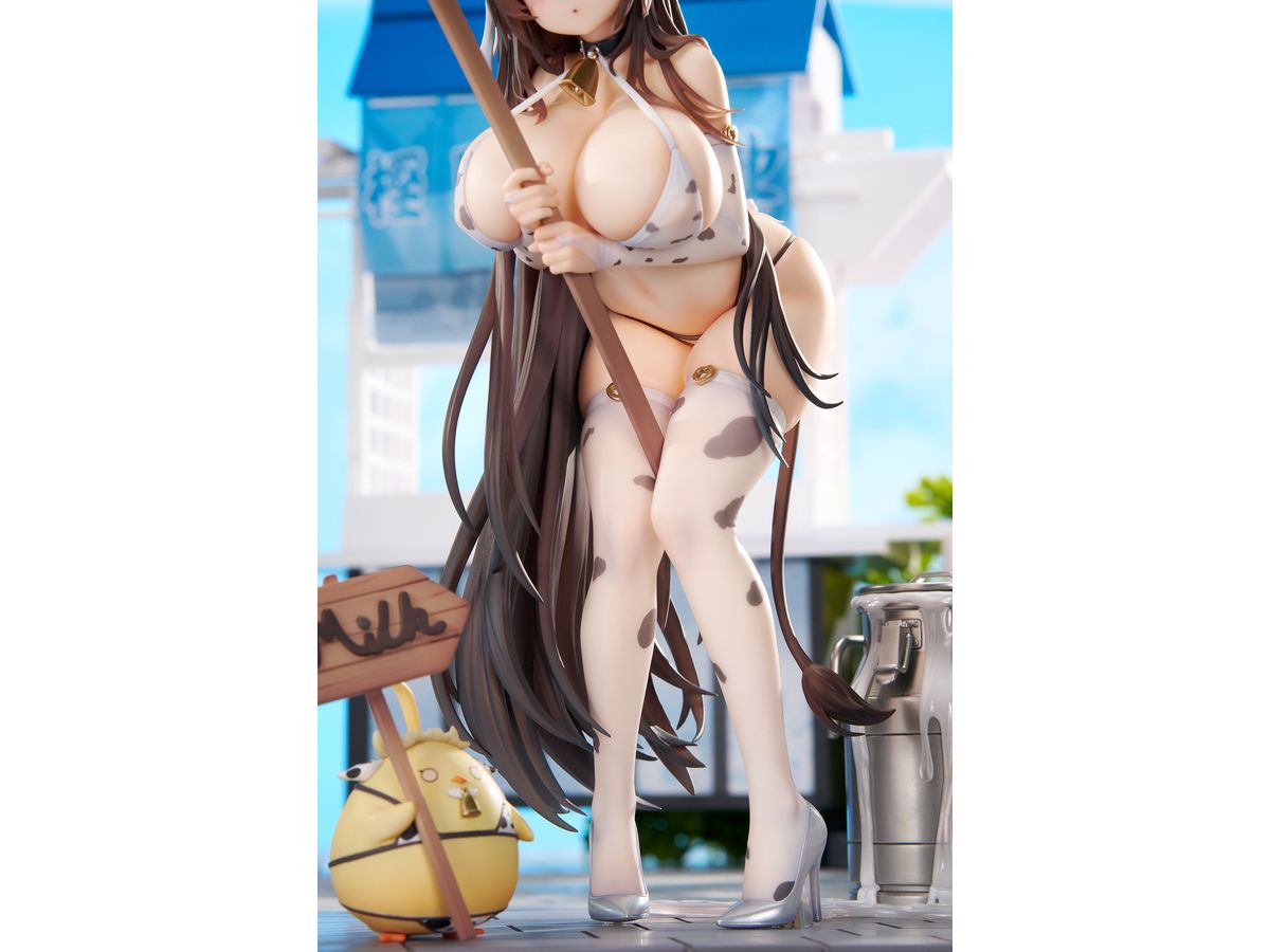 かわいらしい牛柄のコスチュームに身を包み、やわらかな肌の質感を引き立てることで、「樫野」の魅力を余すところなく表現しています。