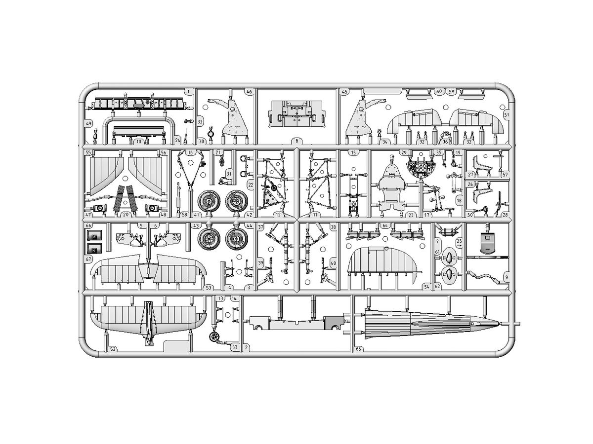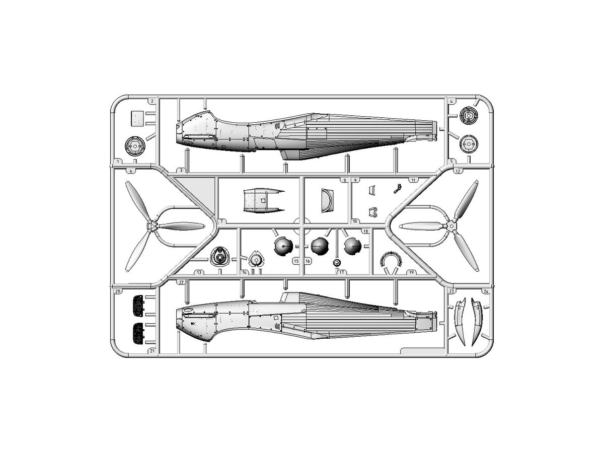 また、付属の2種プロペラ(デ・ハビランド式とロトール式)と3種プロペラスピンナー、ラジエーターとキャブレターインテーク、オプションパーツのトロピカルフィルターは全てハリケーン Mk.Iのために再設計された新規金型パーツとなっています。