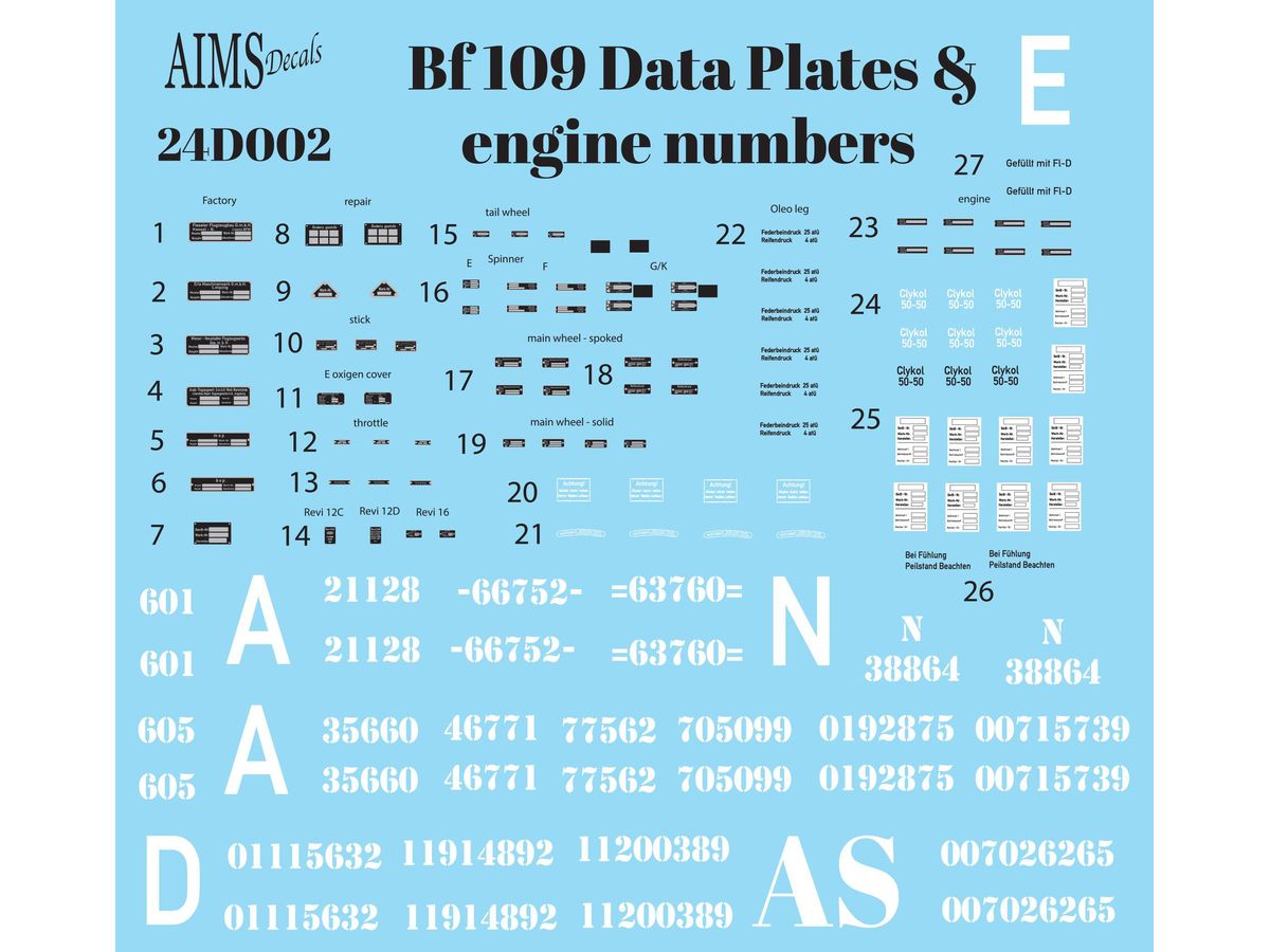 1/24 Bf109 データプレート & エンジン製造番号デカール