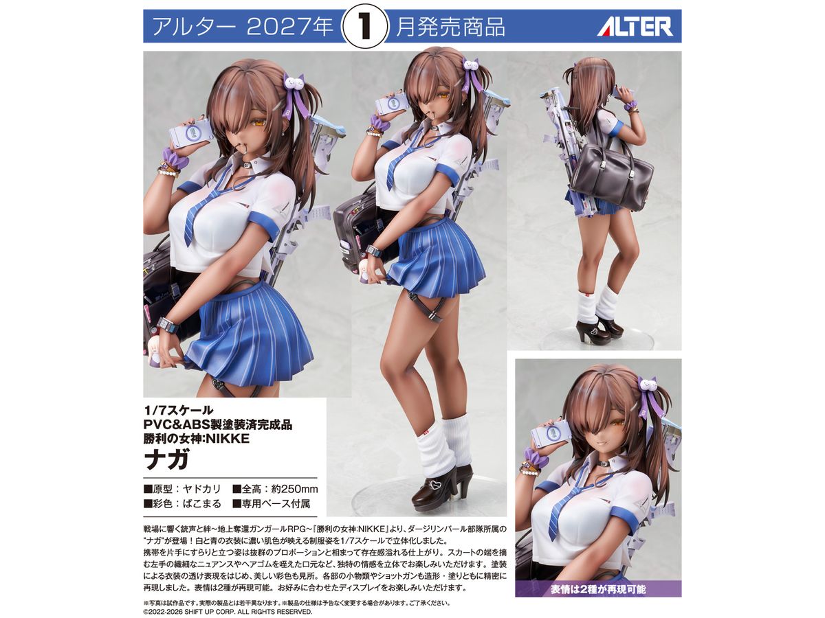 白と青の衣装に濃い肌色が映える制服姿を1/7スケールで立体化しました。