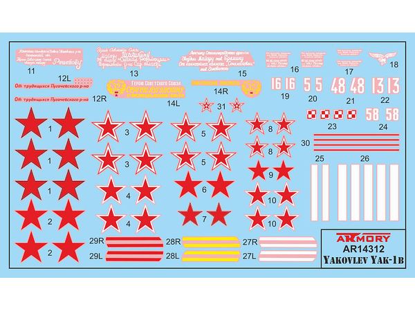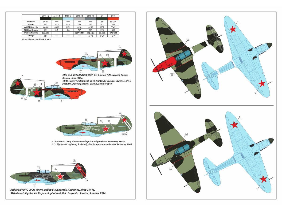 この2機入りキットにはエッチングパーツと、8種類のソ連軍寄贈機デカールが付属しています。