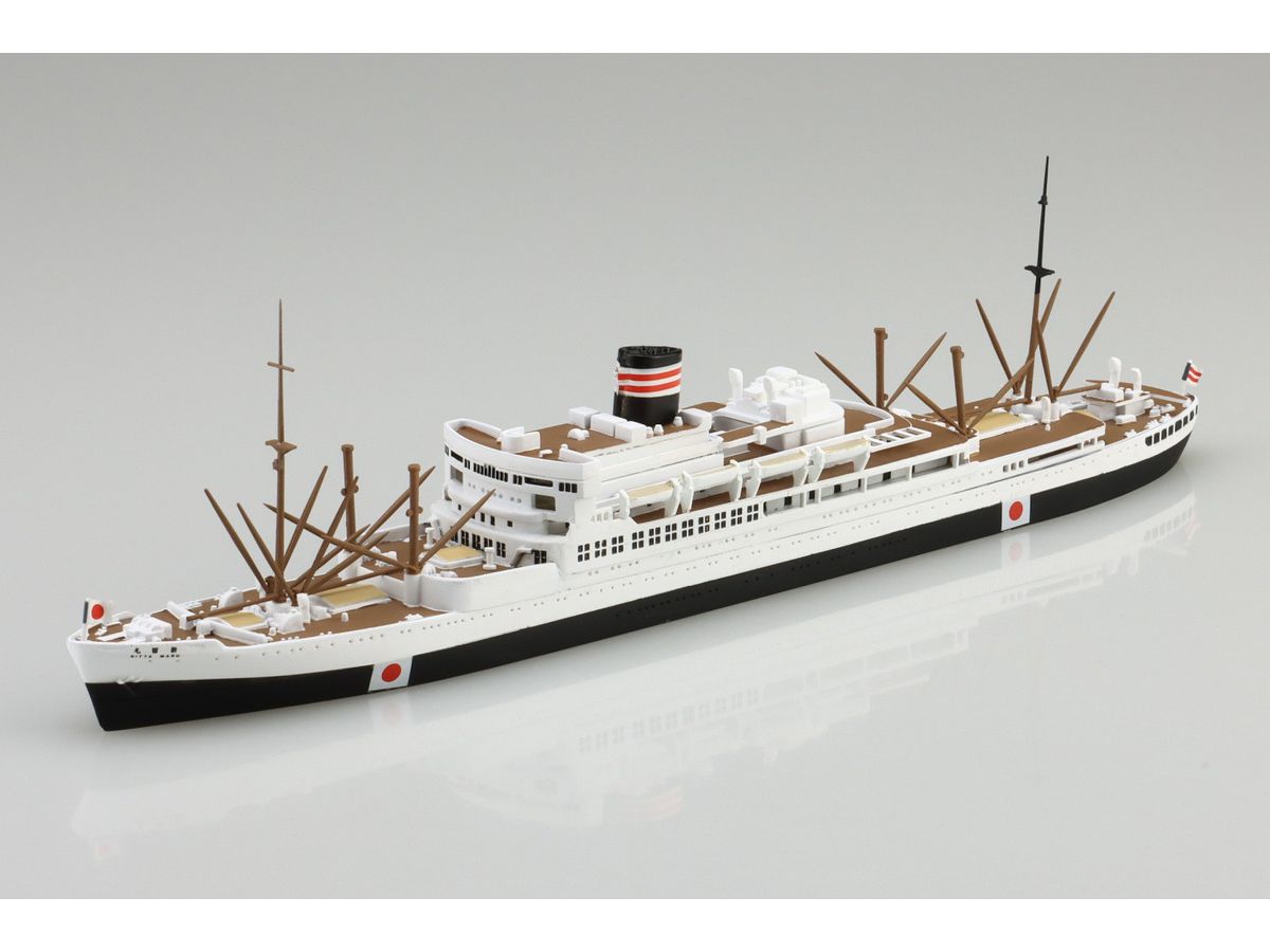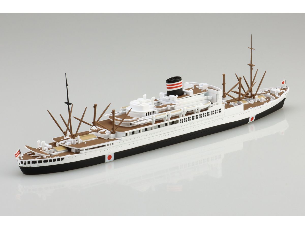 戦時中は航空母艦「冲鷹」として航空機輸送や船団護衛の任務を全うした貨客船「新田丸」を1/700スケールでプラスチックモデルキット化。
