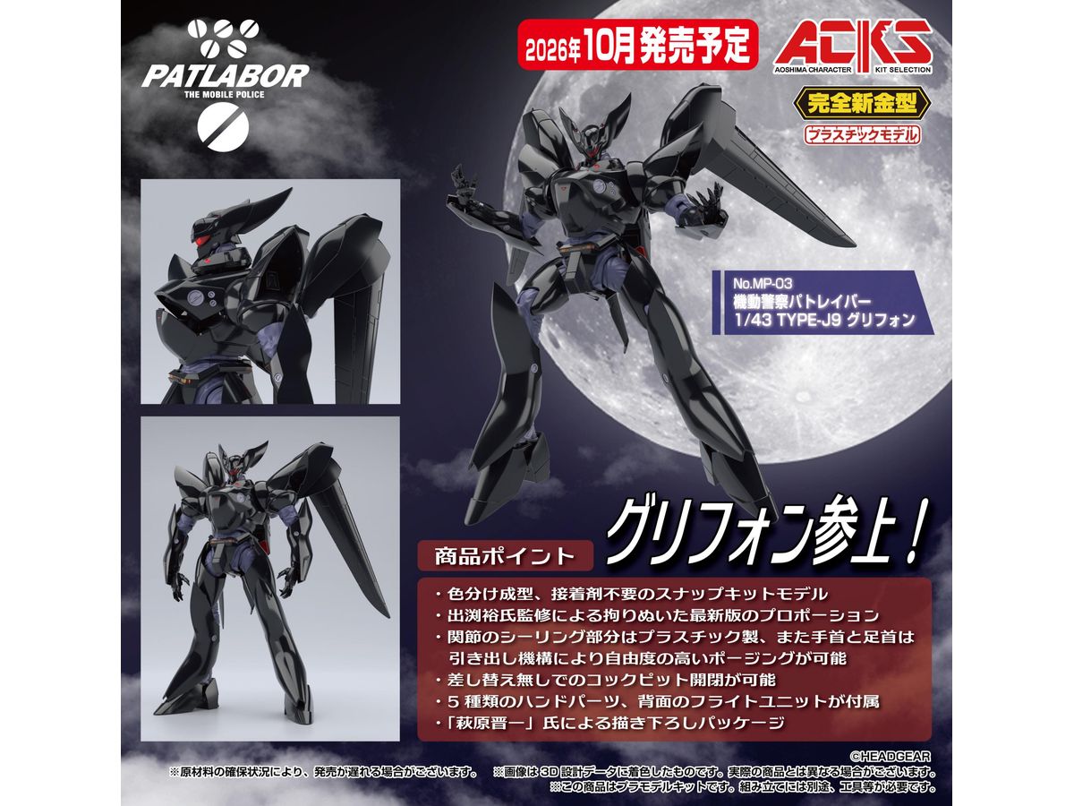 アニメ『機動警察パトレイバー』より、黒いレイバーことTYPE-J9 グリフォンが1/43スケールとなってACKSシリーズに新登場!