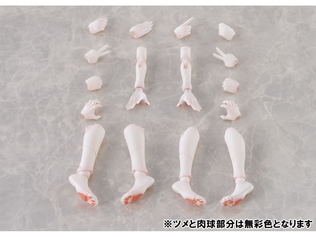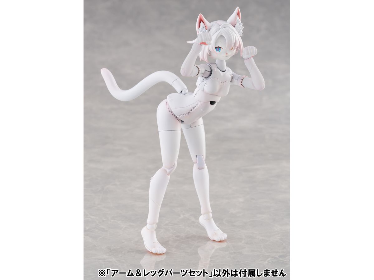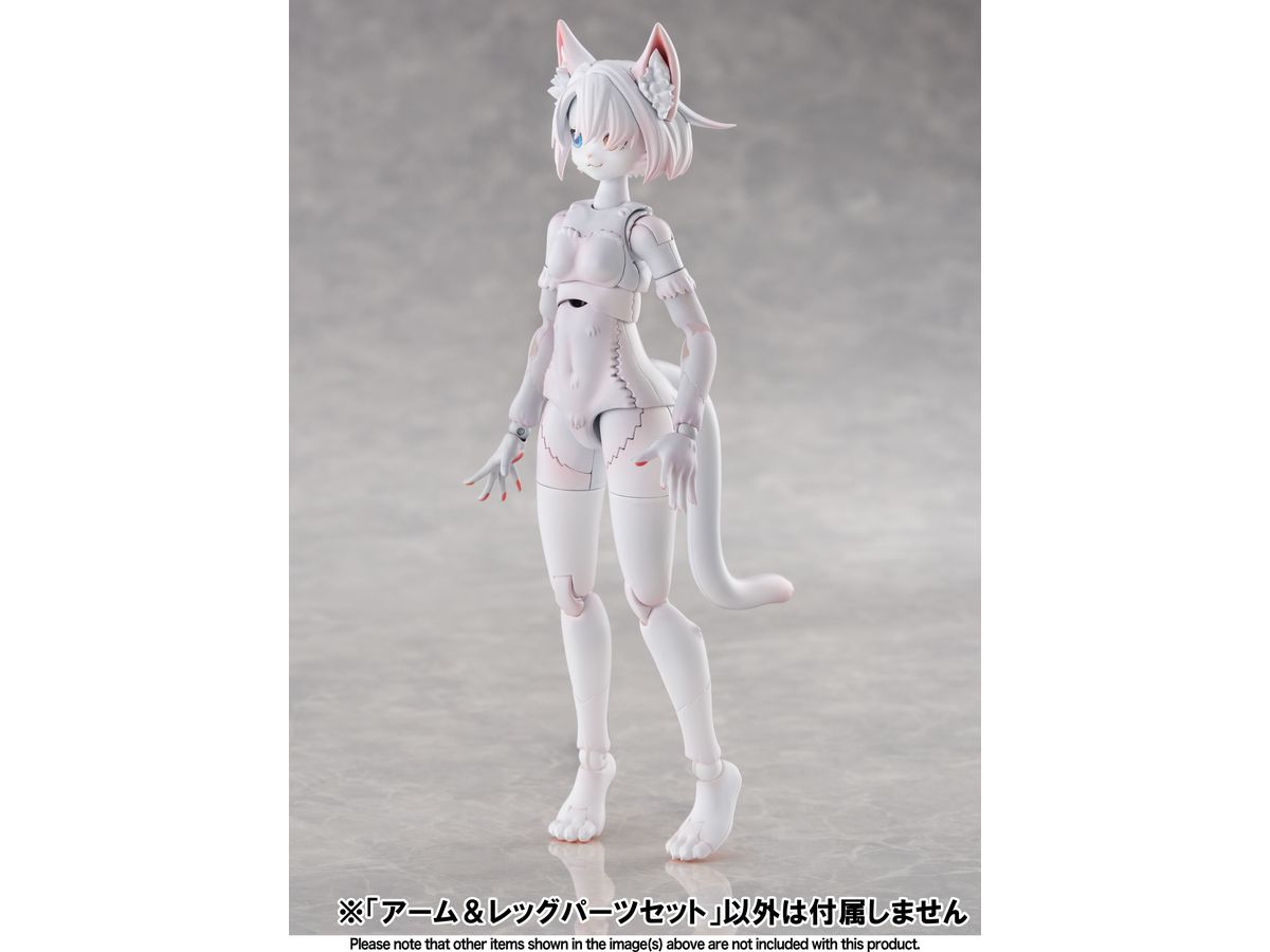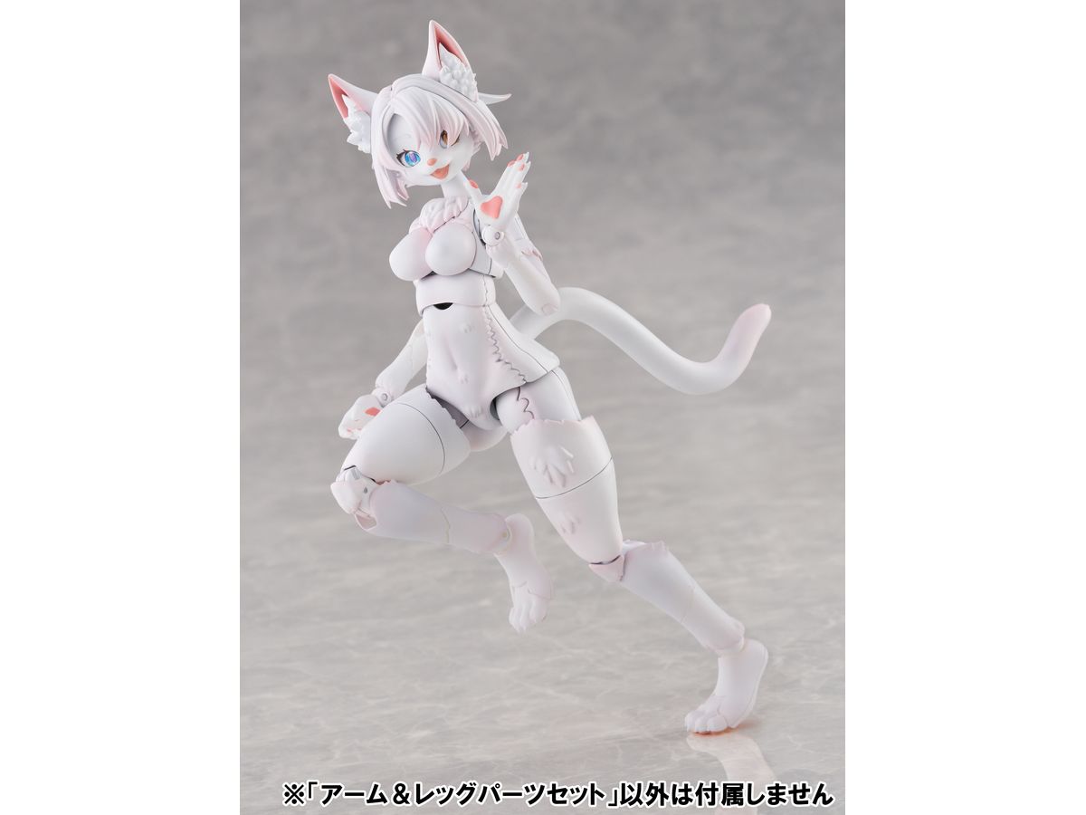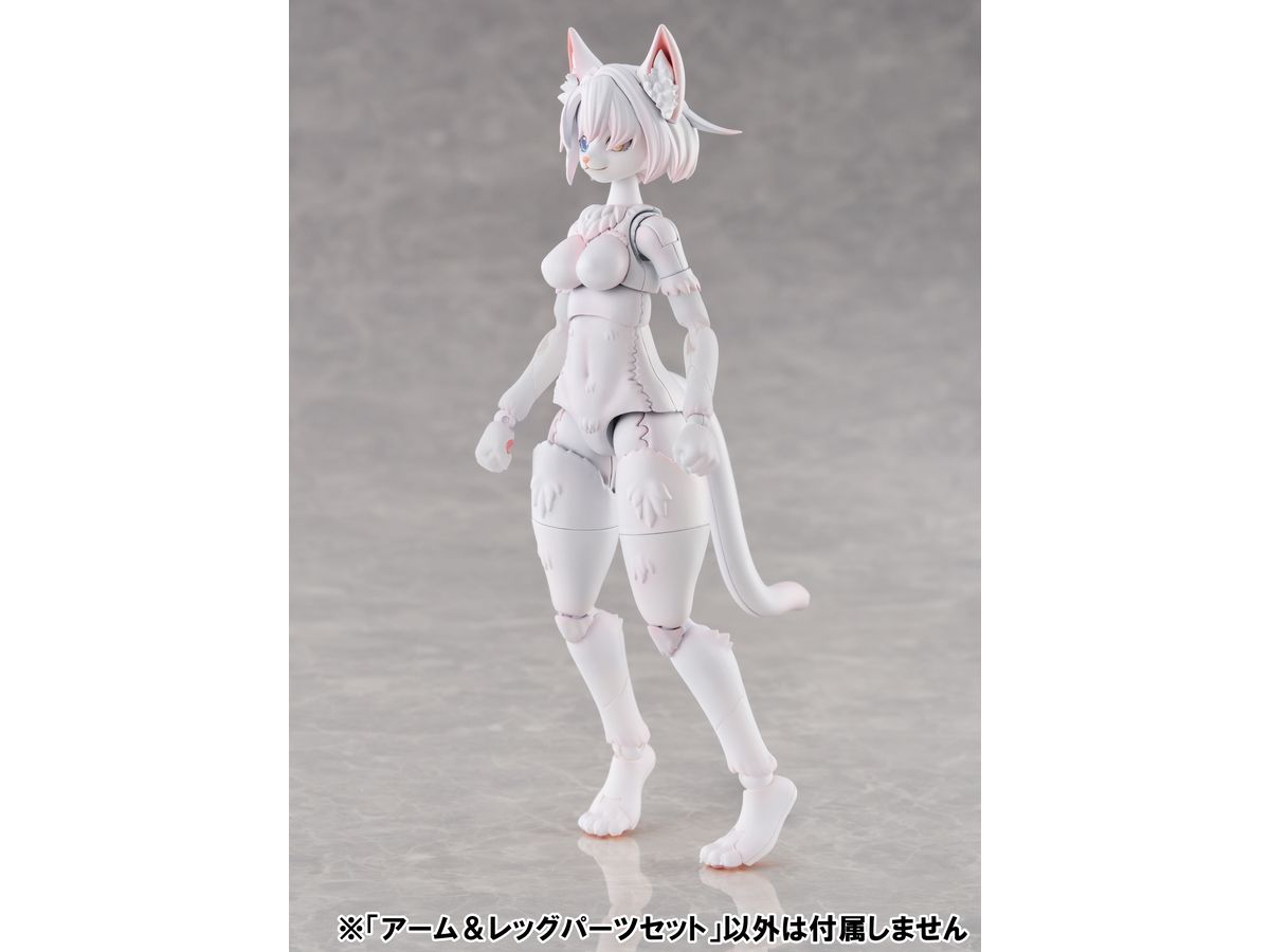 アーム&レッグパーツセットは、新造形の中ケモアーム、中ケモ用レッグ、高ケモ用レッグがセットになっており、ベースキットの腕部と脚部をお好みで交換することで、従来とは違った雰囲気のケモノが再現可能です。