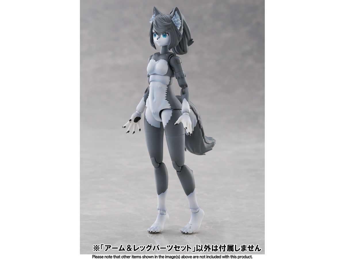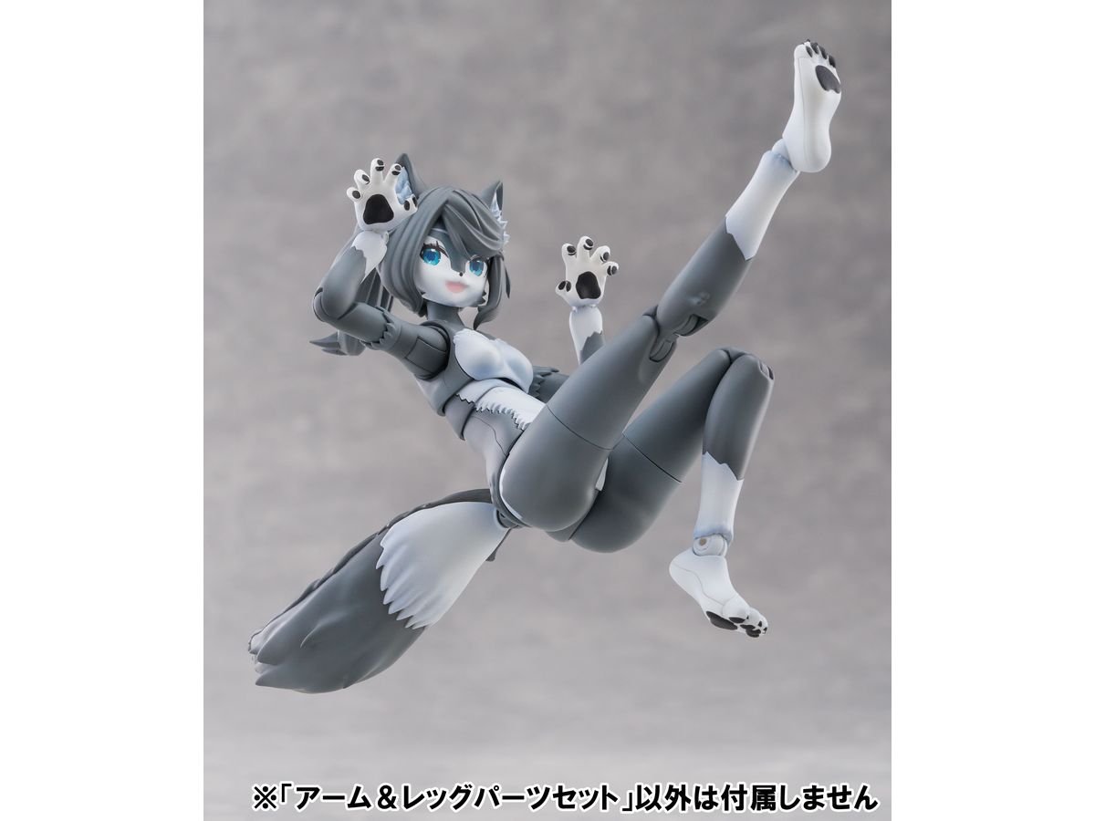 アーム&レッグパーツセットは、新造形の中ケモアーム、中ケモ用レッグ、高ケモ用レッグがセットになっており、ベースキットの腕部と脚部をお好みで交換することで、従来とは違った雰囲気のケモノが再現可能です。