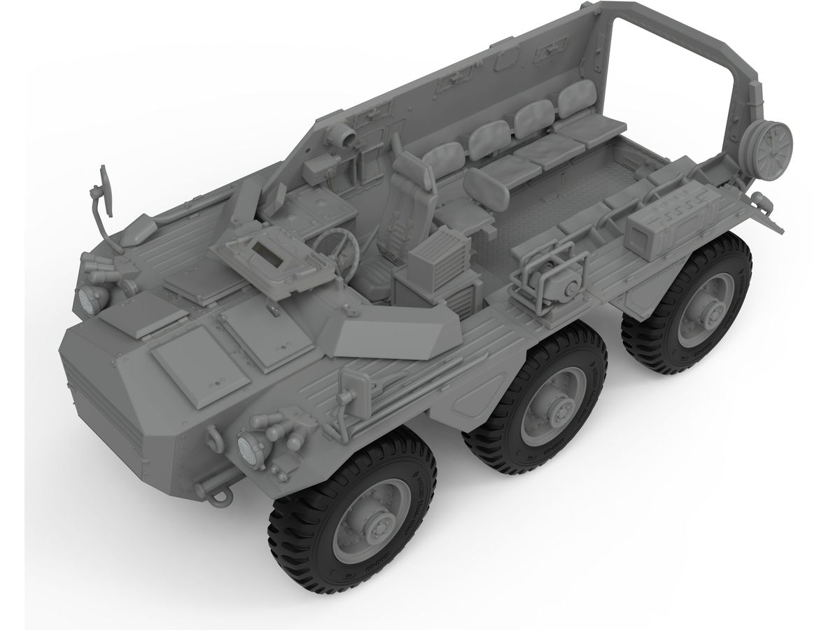 同スケールで初のプラスチックモデル化となる6輪式装甲兵員輸送車です。