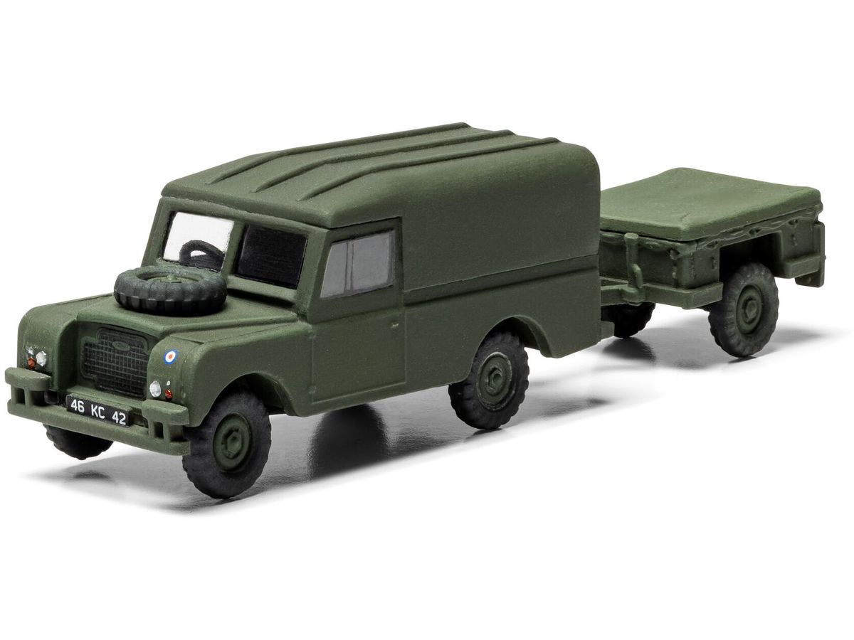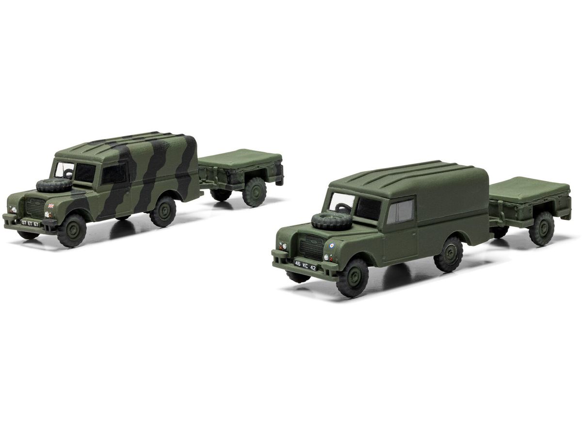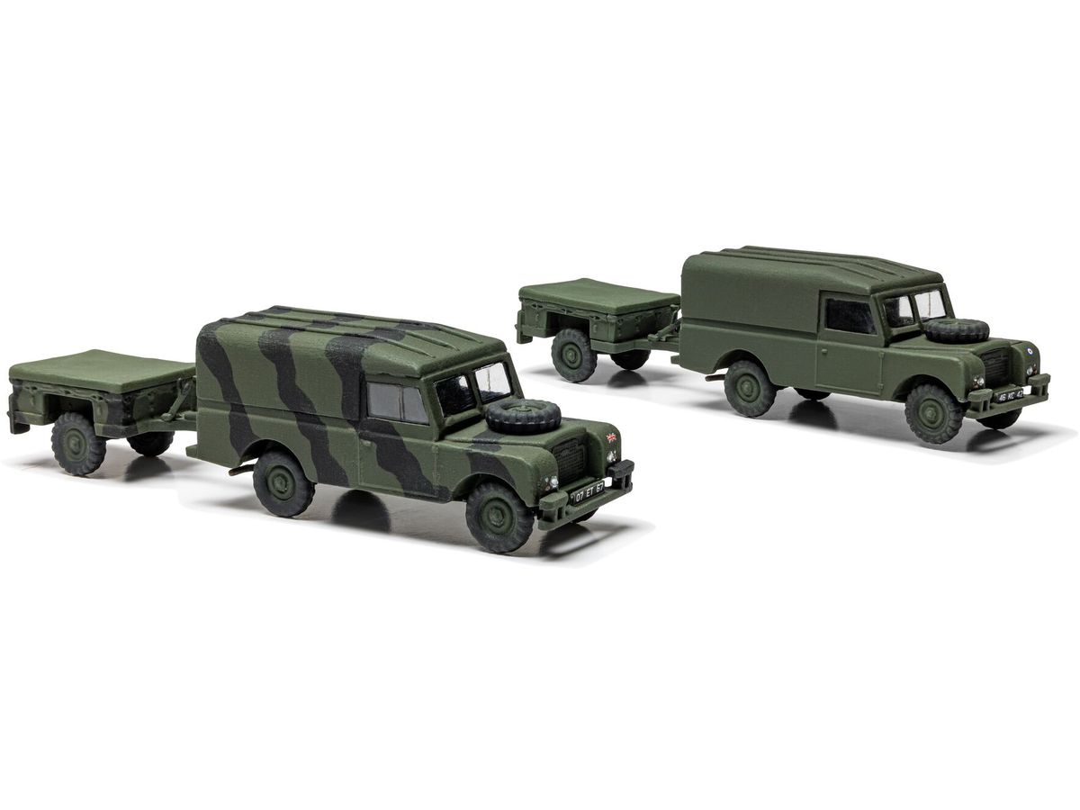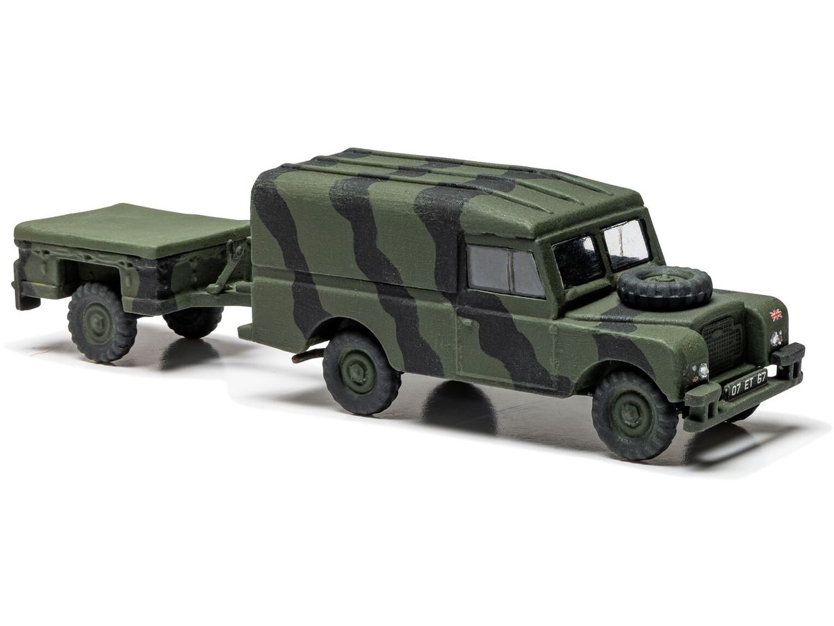 高い走破性と信頼性でイギリス軍を支えたランドローバーの多目的車両とトレーラーのセットです。