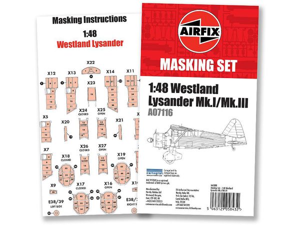 X7116 ウエストランド ライサンダー Mk.Ⅰ/Mk.Ⅲの複雑な窓枠を簡単にマスキング出来るカルトグラフ社製のカット済みマスキングシートです。
