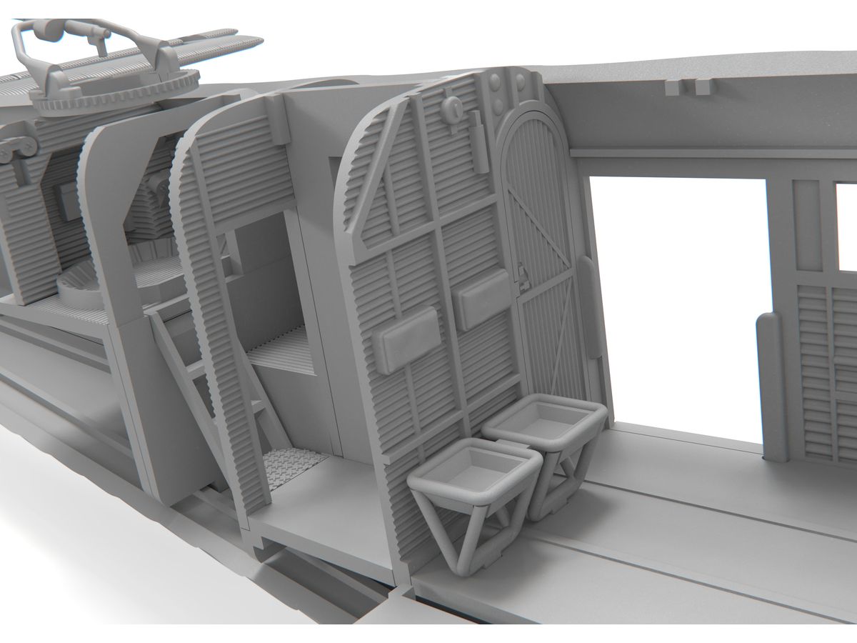 搭乗者用のベンチシートなどの内装も再現されています。