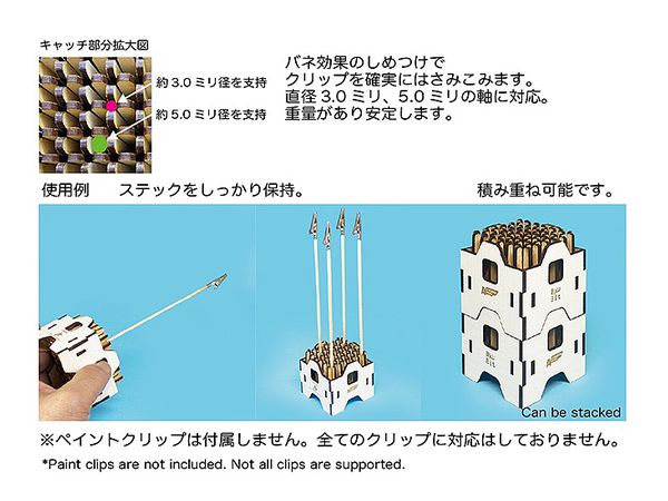 直径約3ミリと5ミリの塗装クリップ棒に対応。