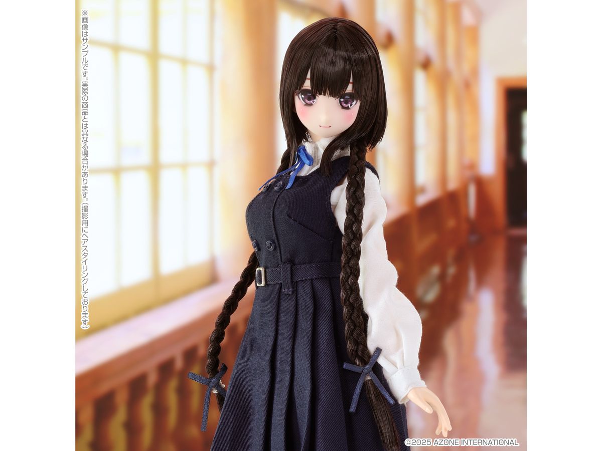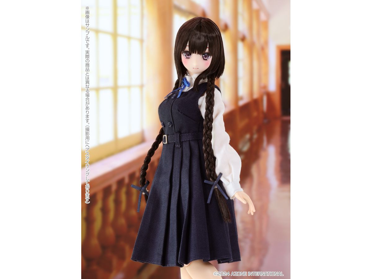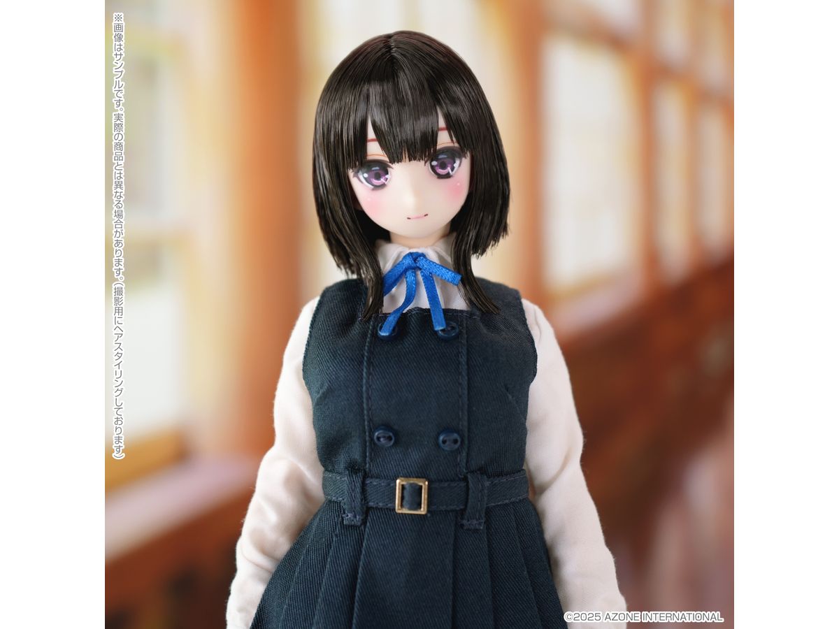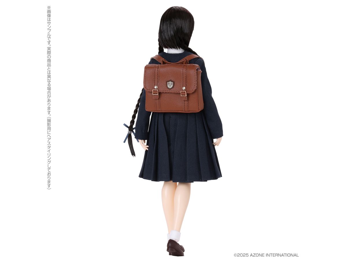 和遥キナ氏デザイン・監修のこだわりの制服は、ジャンパースカートのシルエットや校章のワッペン、スクールバッグなど細部に至るまで再現。