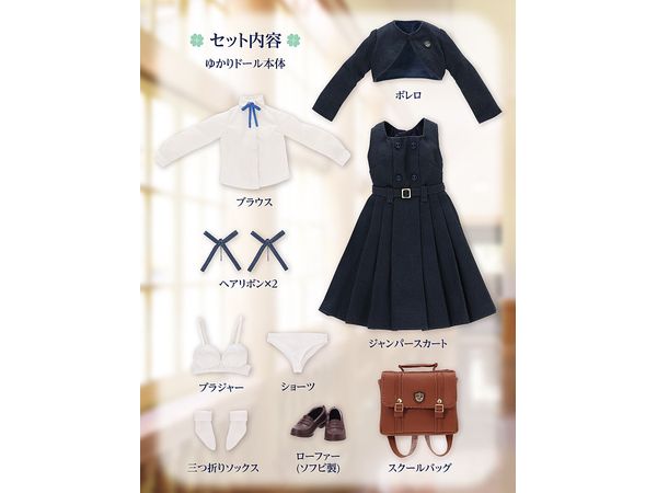 【セット内容】ゆかりドール本体、ヘアリボン×2、ブラウス、ジャンパースカート、ボレロ、