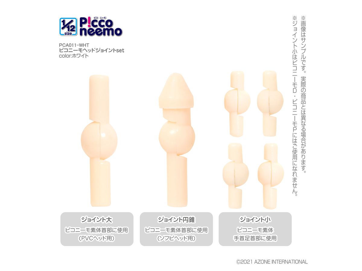 PVCヘッド装着用「ジョイント大」1本、ソフビヘッド装着用「ジョイント円錐」1本、手首・足首の「ジョイント小(※)」4本のセットです。