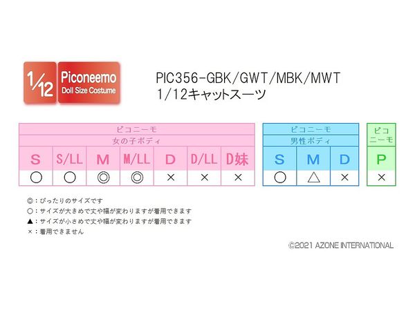 適合ボディ(1:12 ピコニーモサイズ)◯◎▲×