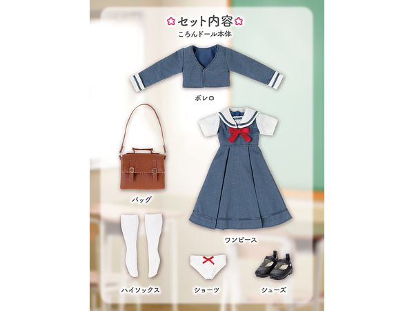 【セット内容】ころんドール本体、ボレロ、ワンピース、ショーツ、ハイソックス、シューズ、バッグ