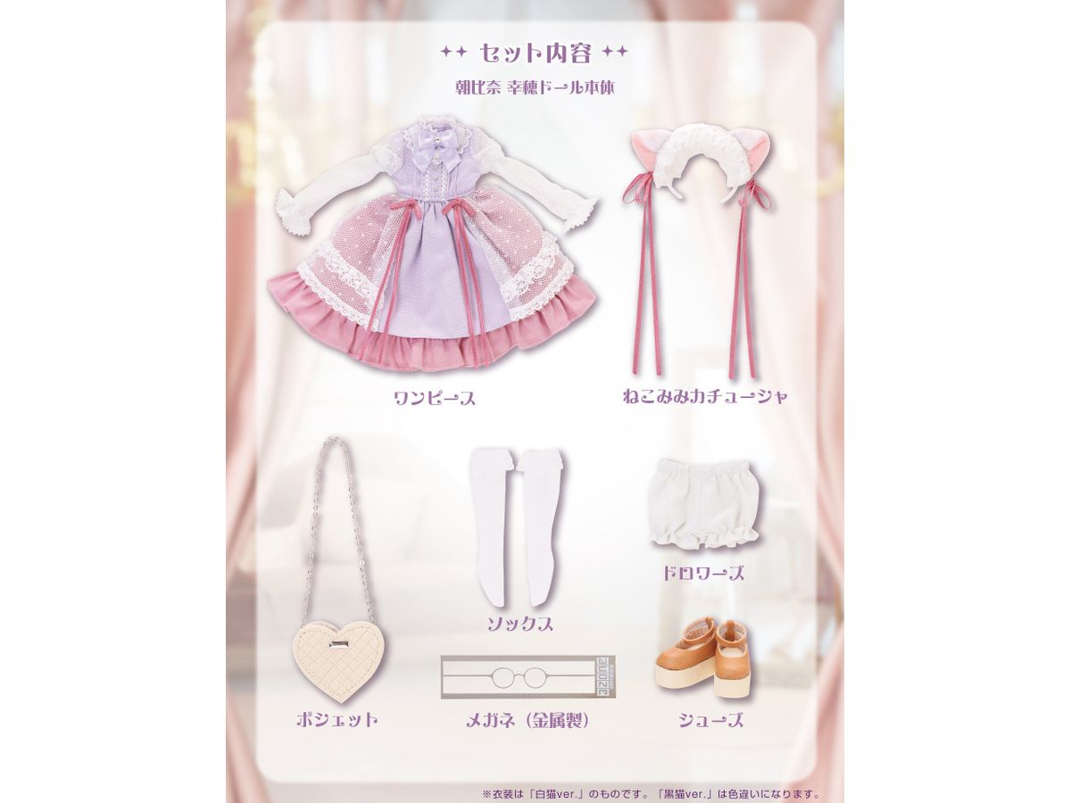 【セット内容】朝比奈 幸穂ドール本体、ねこみみカチューシャ、ワンピース、ドロワーズ、ソックス、シューズ、ポシェット、メガネ(金属製)