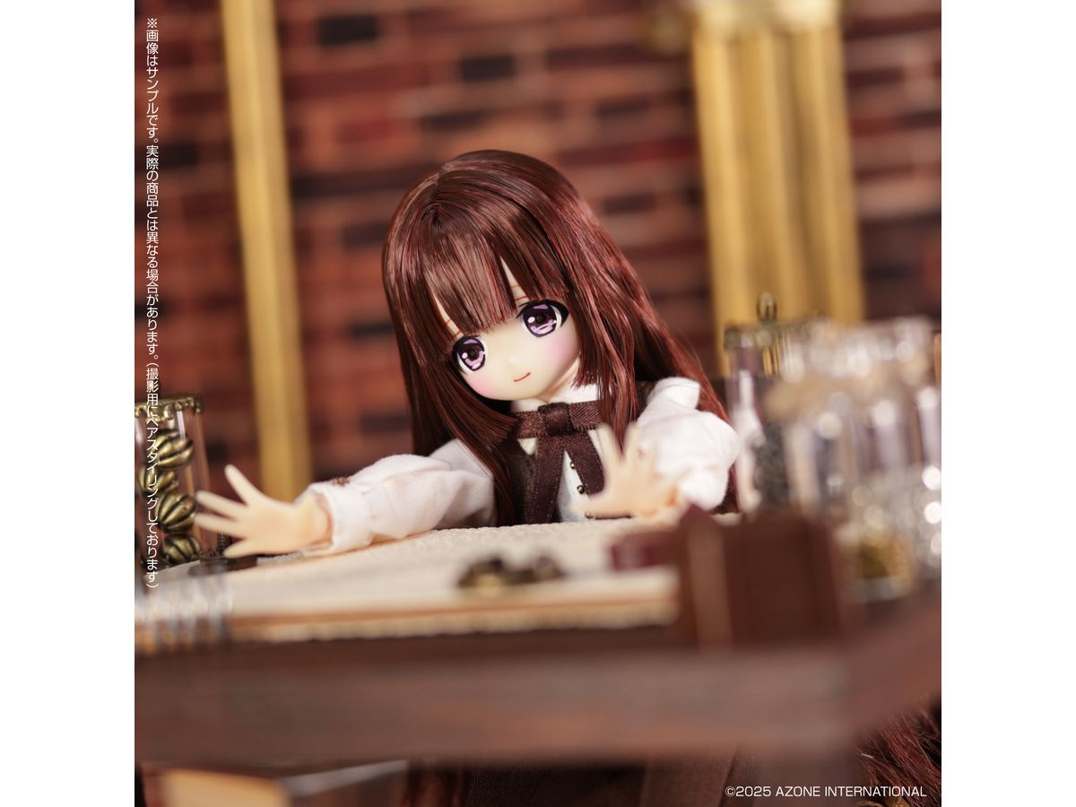 ほんのり赤みがかった「ボルドーブラウン」のロングウェーブヘアーに、好奇心いっぱいのくりくりした「アメジスト」の瞳。