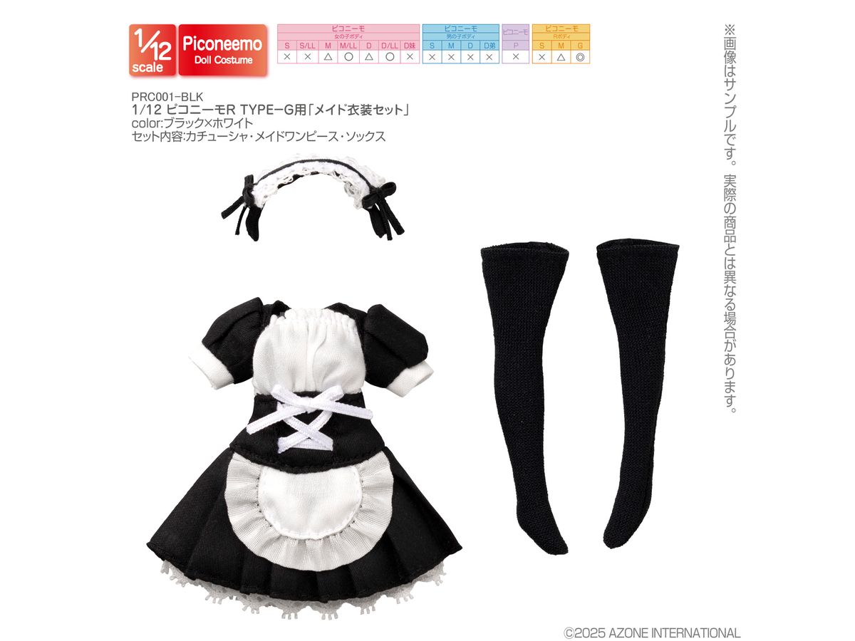 1/12 ピコニーモR TYPE-G用 メイド衣装セット ブラックxホワイト