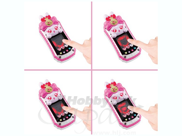 画面にL・O・V・Eを描くと、音と光でプリキュアに変身できます。