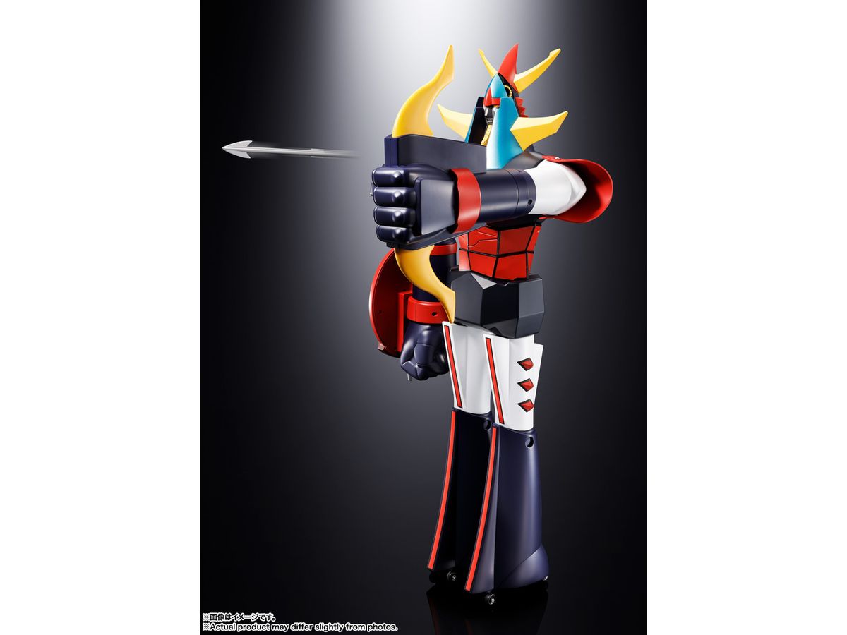 ライディーンの左腕には弓矢型の武装「ゴッド・ゴーガン」が再現されている。