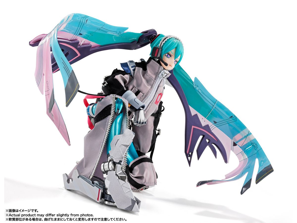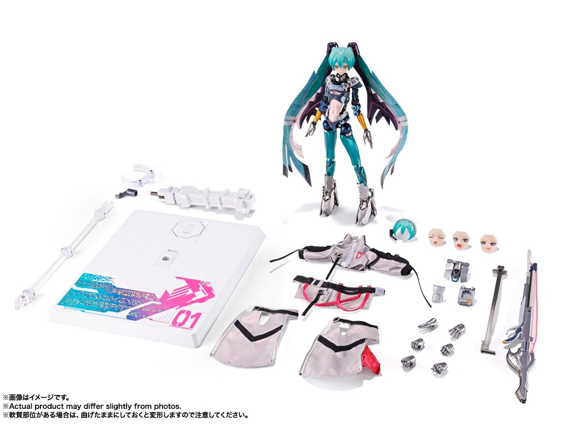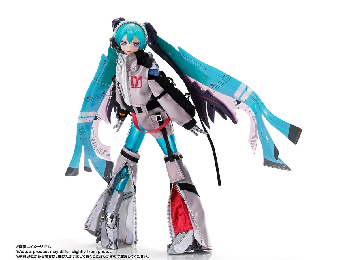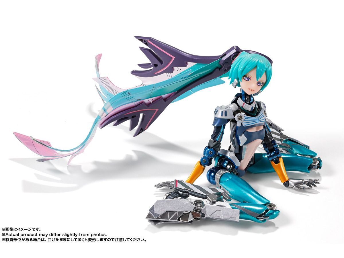 可動とデザインを両立したアレンジに布製衣装やワイヤー入りPVCシート製のツインテールといった複合素材を用いてMETAL BUILD化。