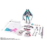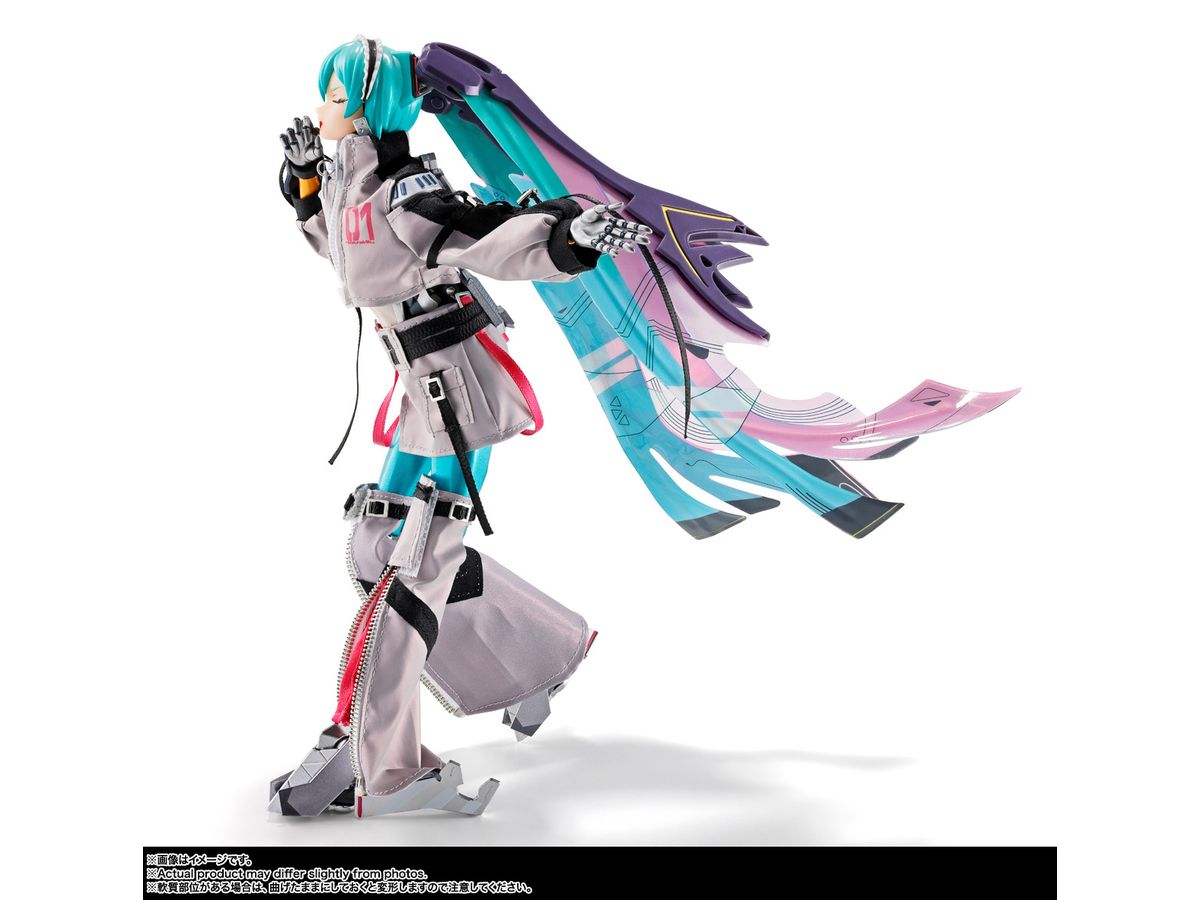 METAL BUILDで培われた合金製アクションフィギュアの設計技術をもとに、布製衣装やワイヤー入りPVCシート製ツインテールといった複合素材の使用、金属感を活かしたデザインアレンジ、そしてデザインの魅力をより際立たせる美麗な彩色と、様々なクリエイターの「創作の連鎖」によって生まれたMETAL BUILD 「初音ミク」が登場!