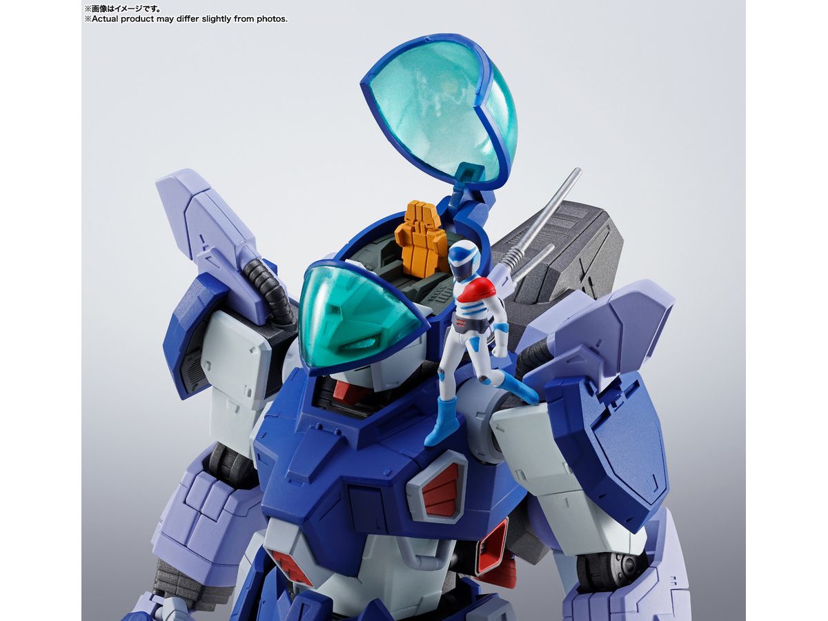 こちらはパーツの組み換えによって、昇降状態とレイズナーの左肩に乗った状態の2パターンで飾ることができ、本機への一連の搭乗シーンを堪能できる。
