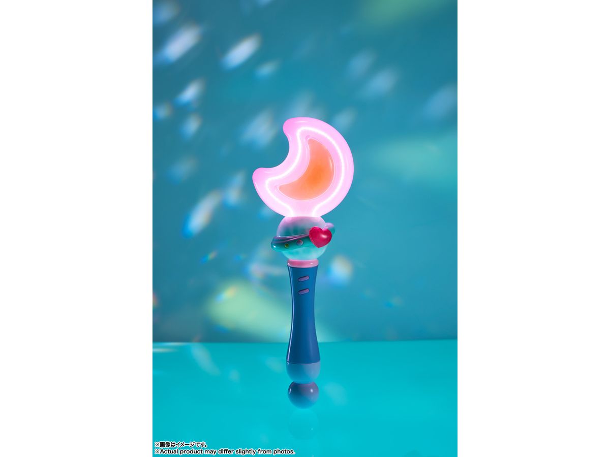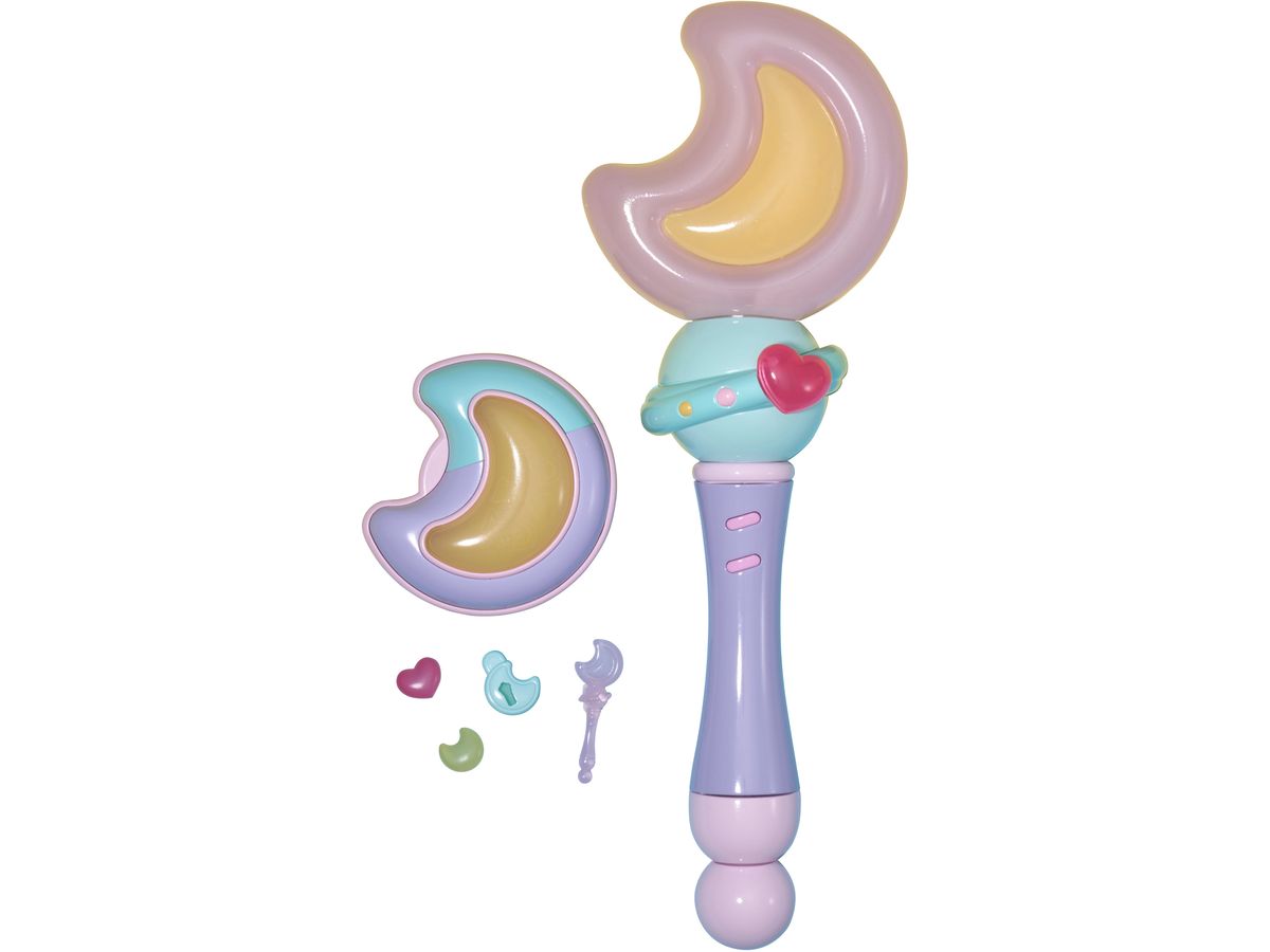 アニメ『魔法の姉妹ルルットリリィ』主人公「流」が「ましゅールル」に変身するためのステッキ「ムーントネオネオン」と、魔法を使えるきっかけとなるコンパクト「ガラスのハート」がセットになっている。