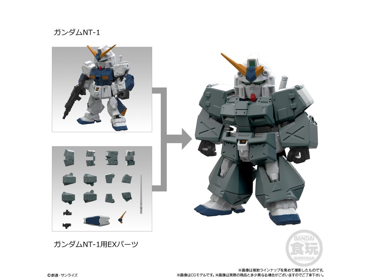 ガンダムNT-1はEXパーツによりにチョバム・アーマー装備型に換装が可能。