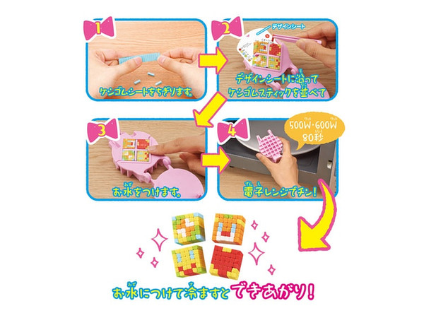 デザインシートに沿って消しゴムスティックを並べ電子レンジで80秒!