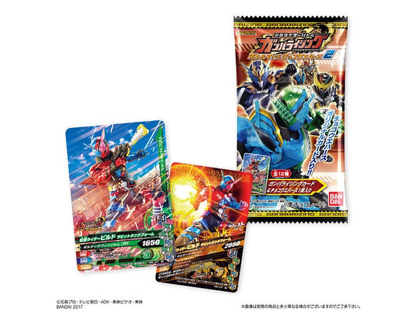 データカードダス仮面ライダーバトルガンバライジングで遊べるカードが1枚付いたチョコウエハースです。