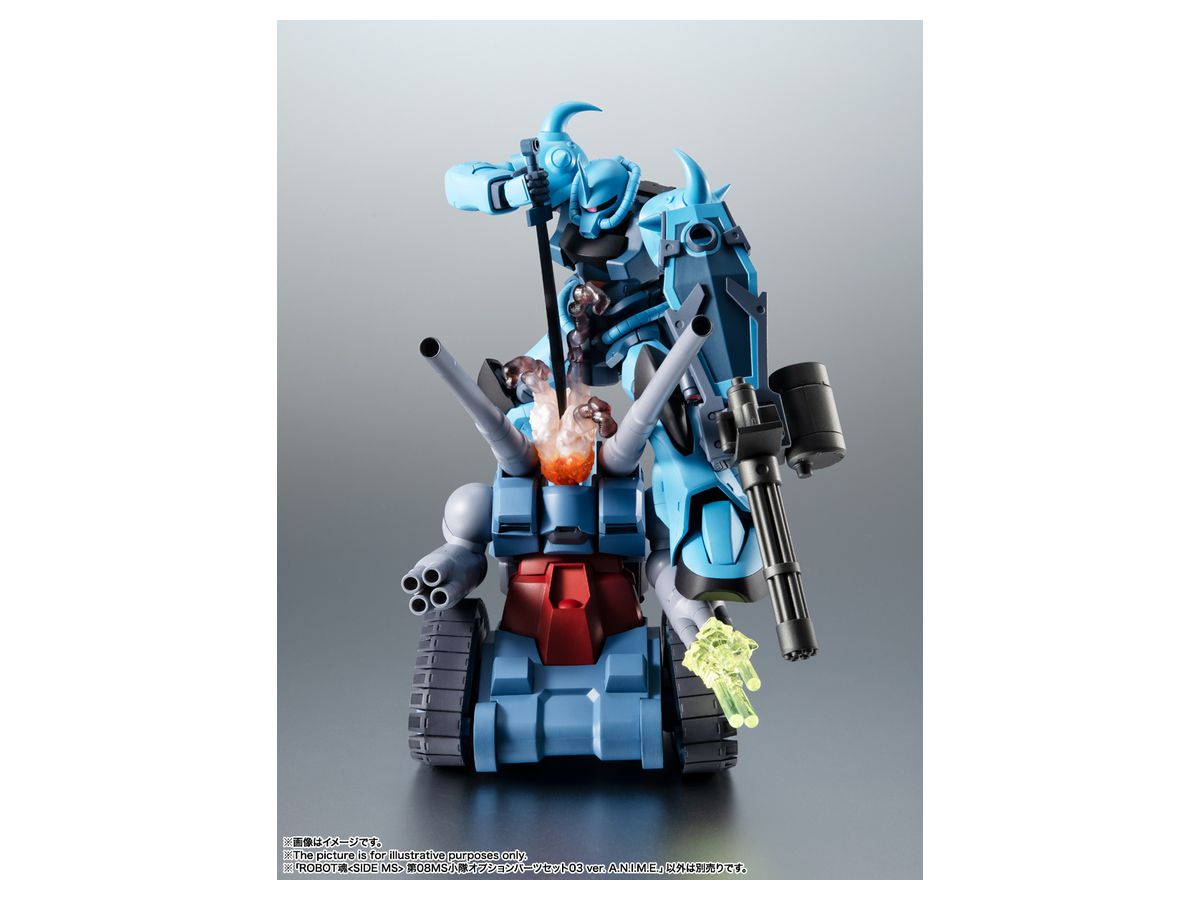 「ROBOT魂 <SIDE MS> RX-75 量産型ガンタンク ver. A.N.I.M.E.」(別売り・受注終了)に取り付け可能なエフェクトも付属し、名シーンを演出できる。