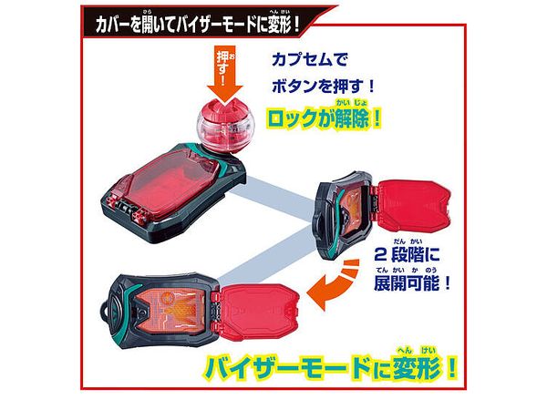 カプセムでボタンを押すとロックが解除!パネルをオープンさせてバイザーモードに変形!