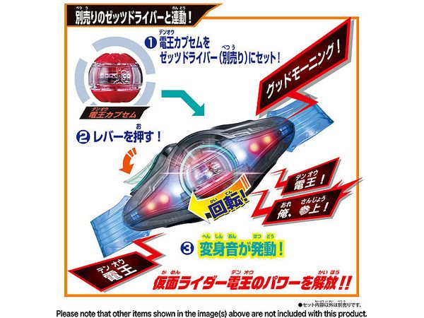 また、付属の「電王カプセム」は別売りの「変身ベルトDXゼッツドライバー(別売り)」にセットすることで各ライダーオリジナルの音声、発光遊びが楽しめます。