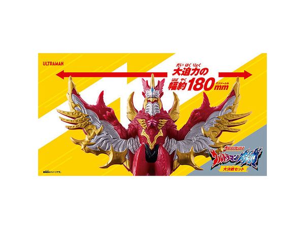 この商品で初立体化となるオメガスラッガーを装備したオメガと、最強のメテオカイジュウ ヴァルジェネスのソフビ2体セット商品です。
