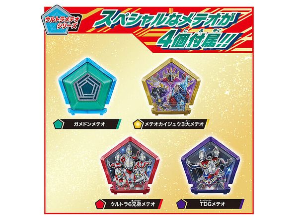 4体目のメテオカイジュウ「ガメドン」とスペシャルなウルトラメテオが4個付属した豪華なセットです。