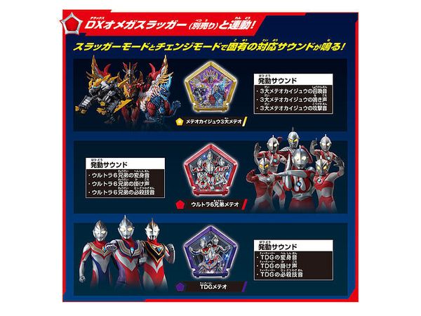 別売りの「DXオメガスラッガー」にセットすると変身・なりきり遊びが楽しめます。
