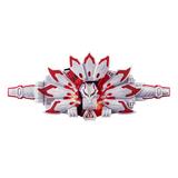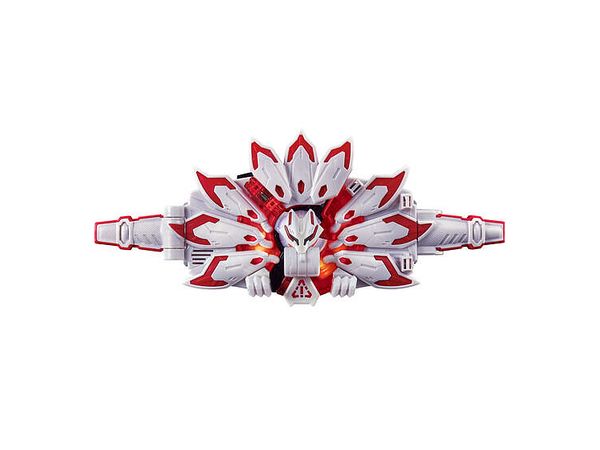 ボタンを押してベルトを回転させるとパーツが展開し、レバーを引くとLEDが発光して変身音が発動!