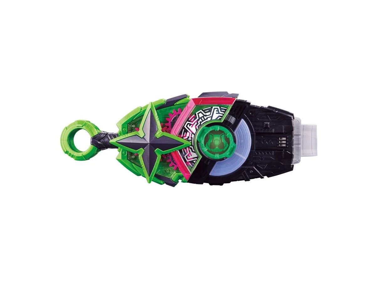 ニンジャレイズバックルを別売りの「変身ベルト DXデザイアドライバー」にセットしてレバーを引いて?し込むと、手裏剣とギアが回り、変身音が発動して「ニンジャフォーム」の変身なりきり遊びが楽しめます。