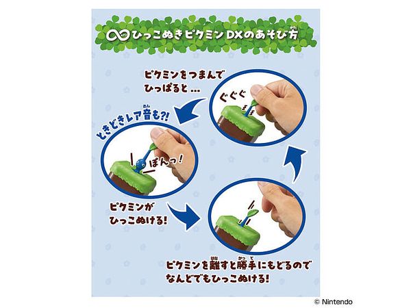 ピクミンをひっこぬく感触を、おなじみのサウンドと合わせて、何度でも体感できるおもちゃです。