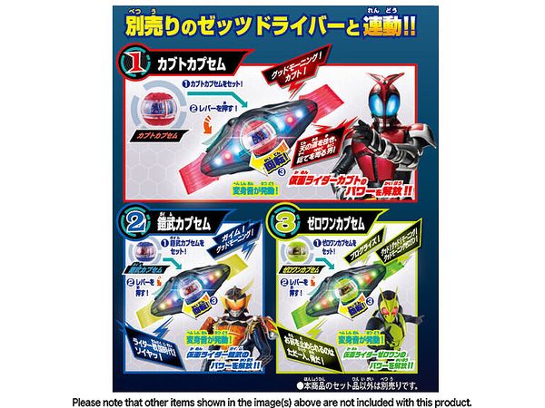 「カブトカプセム」「鎧武カプセム」「ゼロワンカプセム」のセット商品です。