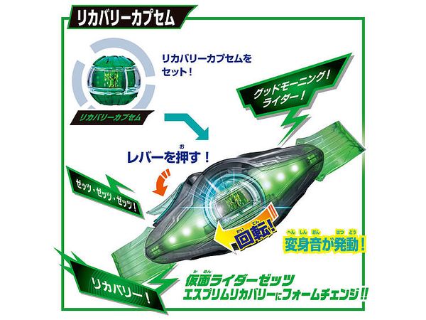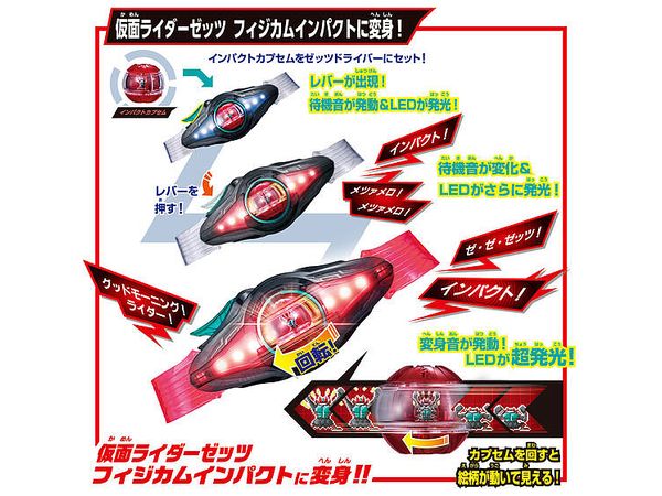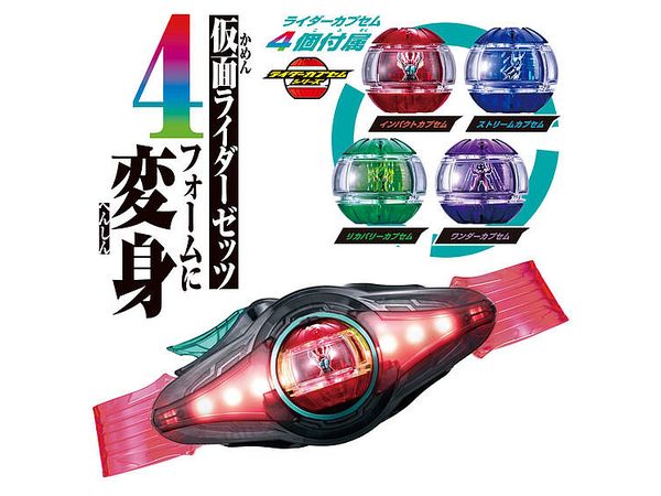 仮面ライダーゼッツが変身・フォームチェンジに使用する「インパクトカプセム」、「ストリームカプセム」、「リカバリーカプセム」、「ワンダーカプセム」が付属!