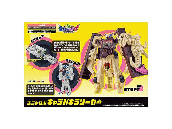 「キャラパキ」と「ラリーカー」が合体、瞬間変形しバーサーカー型のロボになります。
