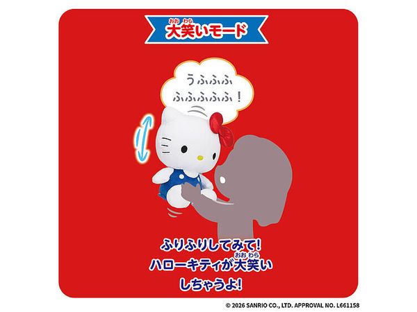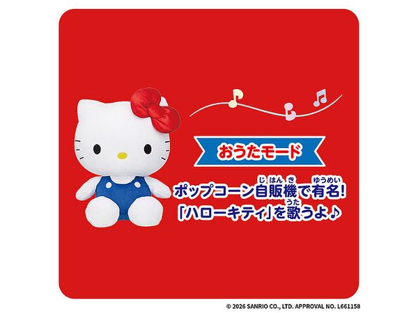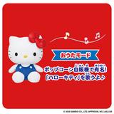 どんどんおしゃべりしてくれる「おしゃべりモード」、ユーザーの声や音に反応してお返事してくれる「おへんじモード」、振ると笑ってくれる「大笑いモード」、ポップコーン自販機で有名な『ハローキティ』を歌ってくれる「おうたモード」など、楽しい機能がいっぱい♪
